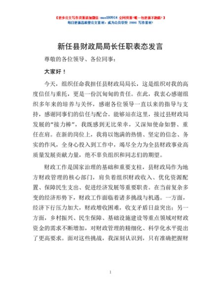 / 新任县财政局局长任职表态发言