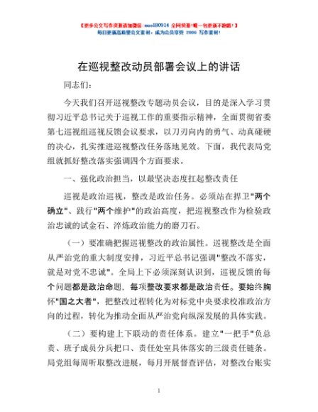 / 在巡视整改动员部署会议上的讲话