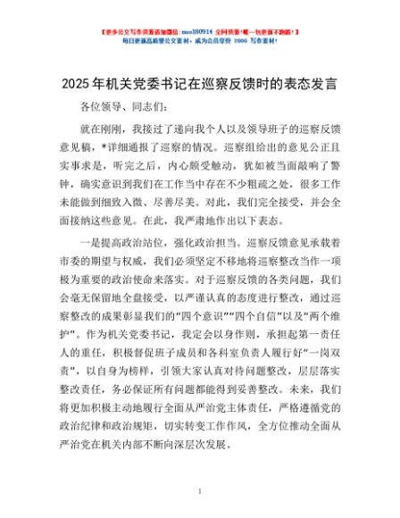 / 2025年机关党委书记在巡察反馈时的表态发言