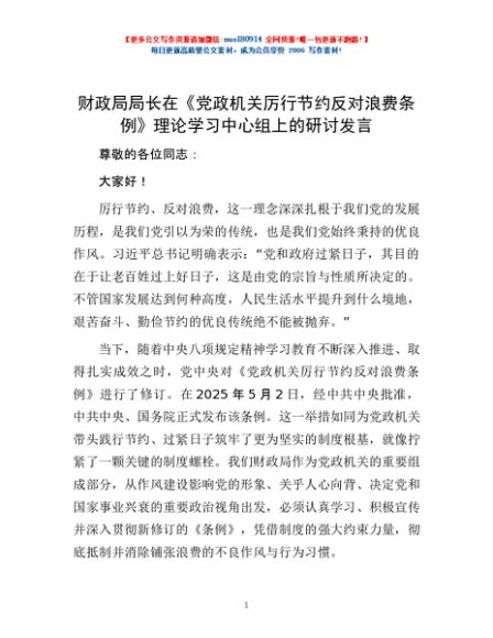 / 财政局局长在《党政机关厉行节约反对浪费条例》理论学习中心组上的研讨发言