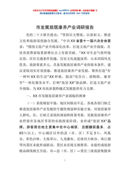 / 市发展旅居康养产业调研报告