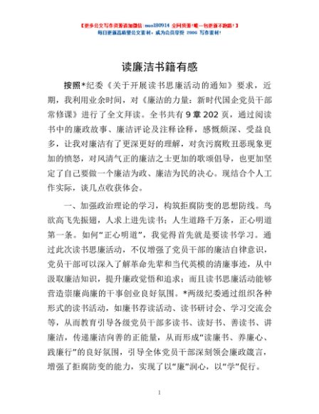 读廉洁书籍有感