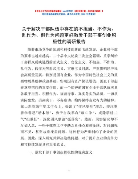 / 关于解决干部队伍中存在的不担当、不作为、乱作为、假作为问题更好激发干部干事创业积极性的调研报告
