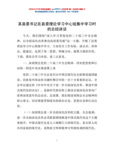/ 某县委书记在县委理论学习中心组集中学习时的总结讲话