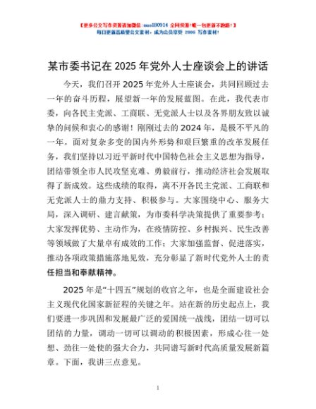 / 某市委书记在2025年党外人士座谈会上的讲话