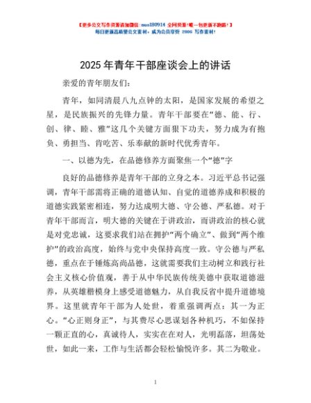 / 2025年青年干部座谈会上的讲话