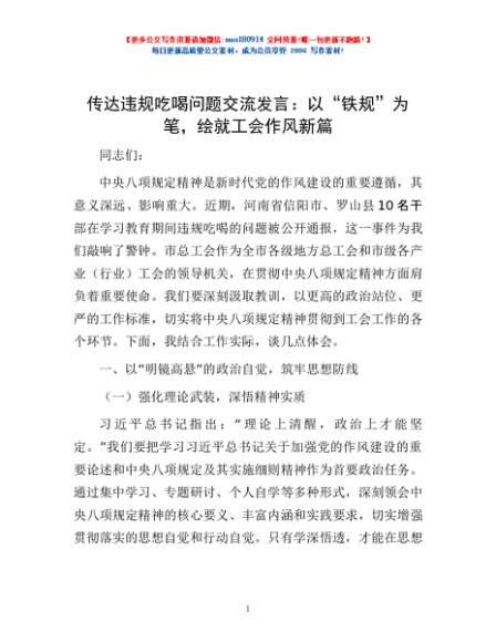 / 传达违规吃喝问题交流发言:以“铁规”为笔,绘就工会作风新篇