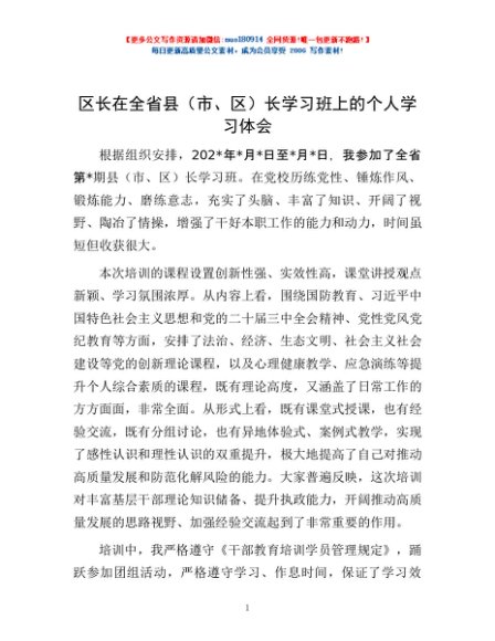 / 区长在全省县(市、区)长学习班上的个人学习体会