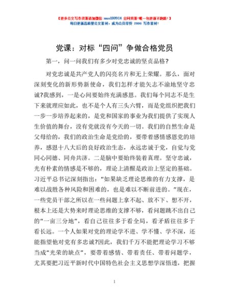 / 党课:对标“四问” 争做合格党员