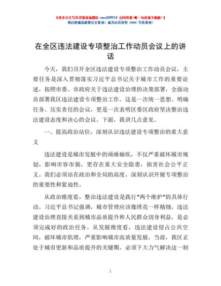 / 在全区违法建设专项整治工作动员会议上的讲话