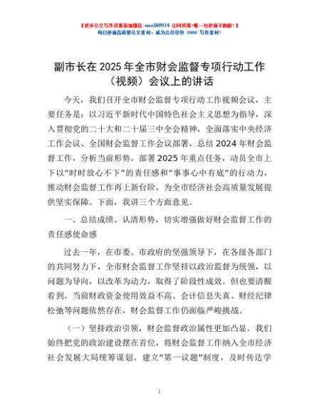 / 副市长在2025年全市财会监督专项行动工作(视频)会议上的讲话