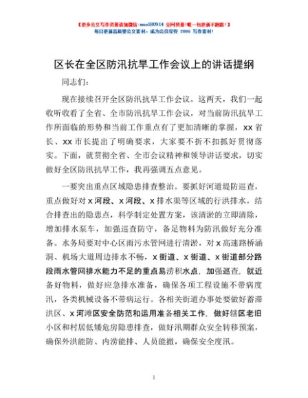 / 区长在全区防汛抗旱工作会议上的讲话提纲