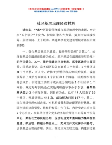 / 社区基层治理经验材料