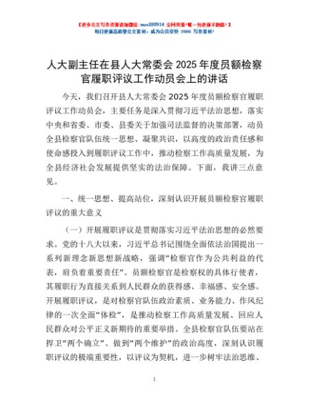 / 人大副主任在县人大常委会2025年度员额检察官履职评议工作动员会上的讲话