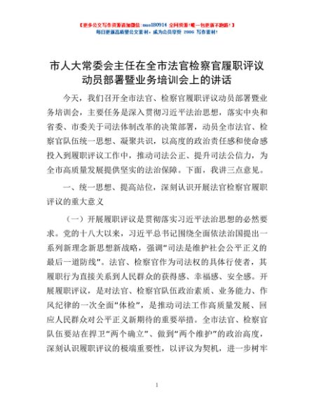 / 市人大常委会主任在全市法官检察官履职评议动员部署暨业务培训会上的讲话