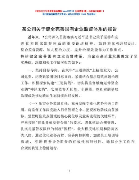 / 某公司关于健全完善国有企业监督体系的报告