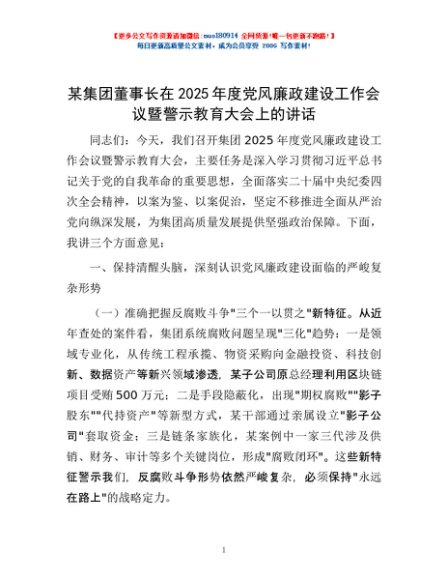 / 某集团董事长在2025年度党风廉政建设工作会议暨警示教育大会上的讲话