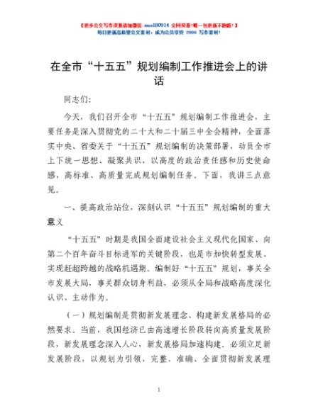 / 在全市“十五五”规划编制工作推进会上的讲话