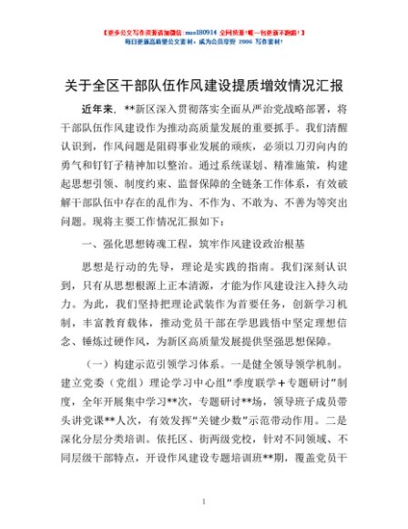 / 关于全区干部队伍作风建设提质增效情况汇报