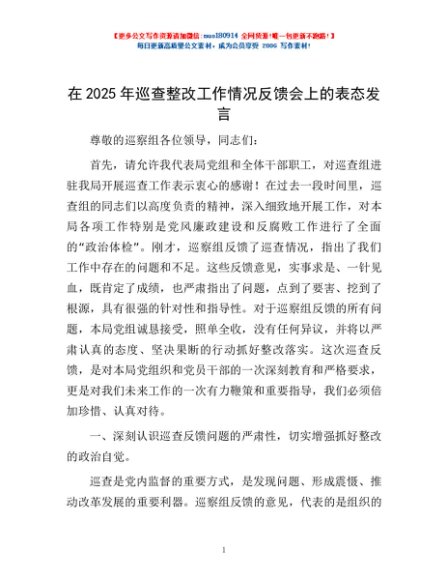 / 在2025年巡查整改工作情况反馈会上的表态发言