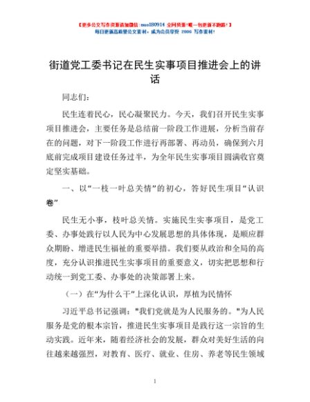 / 街道党工委书记在民生实事项目推进会上的讲话