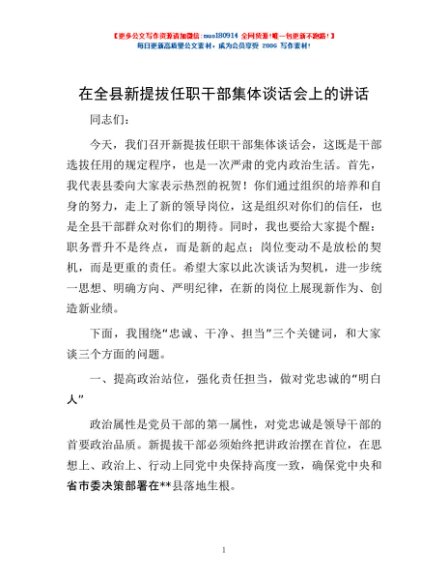 / 在全县新提拔任职干部集体谈话会上的讲话