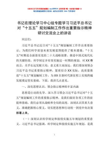 / 书记在理论学习中心组专题学习习近平总书记对“十五五”规划编制工作作出重要指示精神研讨交流会上的讲话