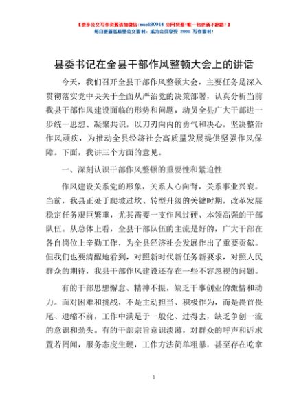 / 县委书记在全县干部作风整顿大会上的讲话