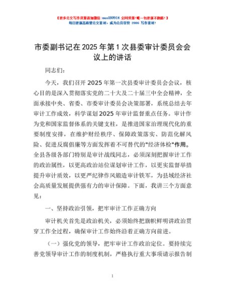 / 市委副书记在2025年第1次县委审计委员会会议上的讲话
