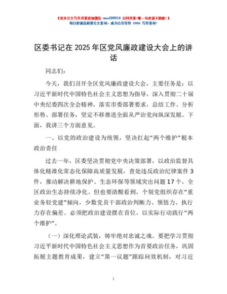 / 区委书记在2025年区党风廉政建设大会上的讲话
