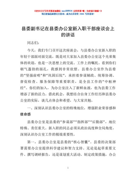 / 县委副书记在县委办公室新入职干部座谈会上的讲话