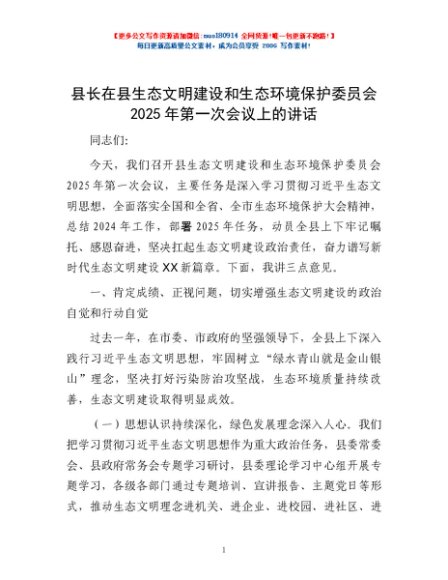 / 县长在县生态文明建设和生态环境保护委员会2025年第一次会议上的讲话