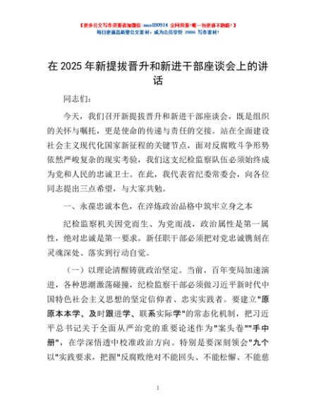 / 在2025年新提拔晋升和新进干部座谈会上的讲话