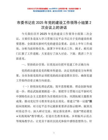 / 市委书记在2025年党的建设工作领导小组第2次会议上的讲话