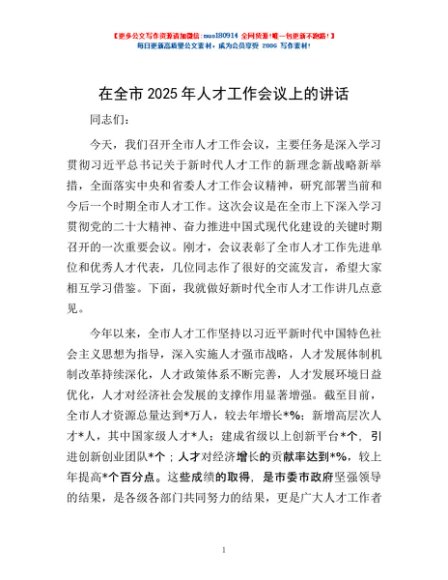/ 在全市2025年人才工作会议上的讲话