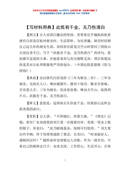 【写材料用典】此抵有千金,无乃伤清白