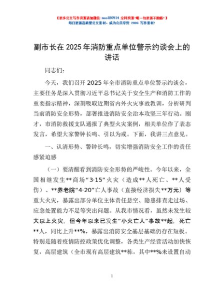 / 副市长在2025年消防重点单位警示约谈会上的讲话