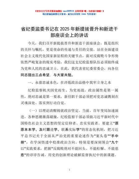 / 省纪委监委书记在2025年新提拔晋升和新进干部座谈会上的讲话