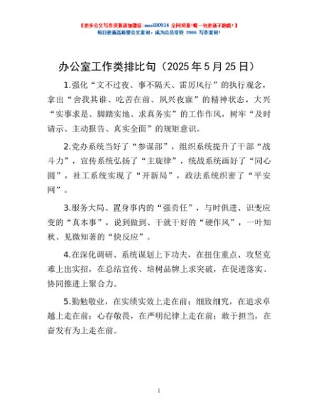 / 办公室工作类排比句(2025年5月25日)