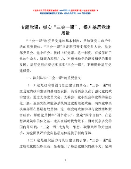 / 专题党课:抓实“三会一课”,提升基层党建质量