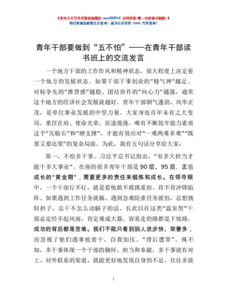 / 青年干部要做到“五不怕”——在青年干部读书班上的交流发言