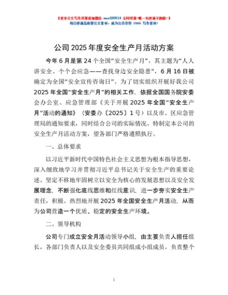 / 公司2025年度安全生产月活动方案