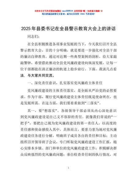 / 2025年县委书记在全县警示教育大会上的讲话