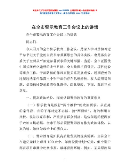 / 在全市警示教育工作会议上的讲话