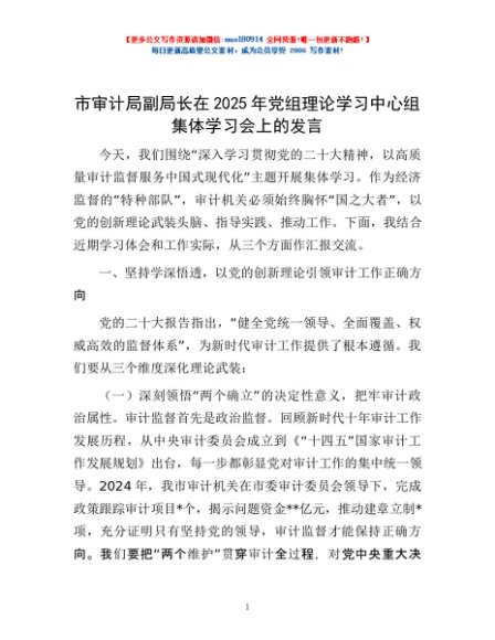 / 市审计局副局长在2025年党组理论学习中心组集体学习会上的发言