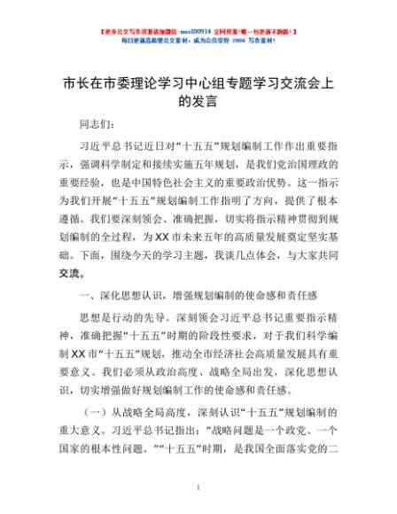 / 市长在市委理论学习中心组专题学习交流会上的发言
