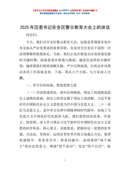 / 2025年区委书记在全区警示教育大会上的讲话