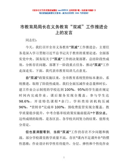 / 市教育局局长在义务教育 “双减” 工作推进会上的发言