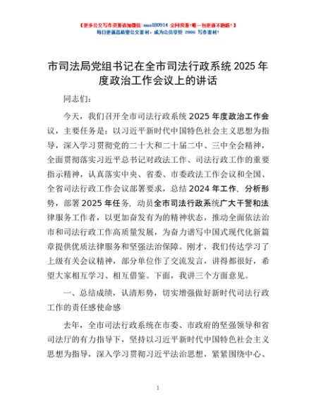 / 市司法局党组书记在全市司法行政系统2025年度政治工作会议上的讲话