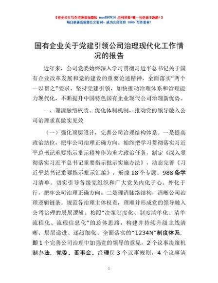/ 国有企业关于党建引领公司治理现代化工作情况的报告